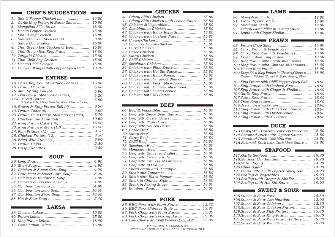 Here, the menu unfolds like a collection of comforting classics, inviting exploration without pressure. From the tender crunch of delicately prepared chicken to the rich depths of soups that draw you back for spoonful after spoonful, each dish is thoughtfully crafted to feel both satisfying and honest. The array of prawn dishes, noodles, and rice specials offer a range that caters to different appetites and moods, all rooted in familiar flavors that feel like a warm handshake after a long day.
